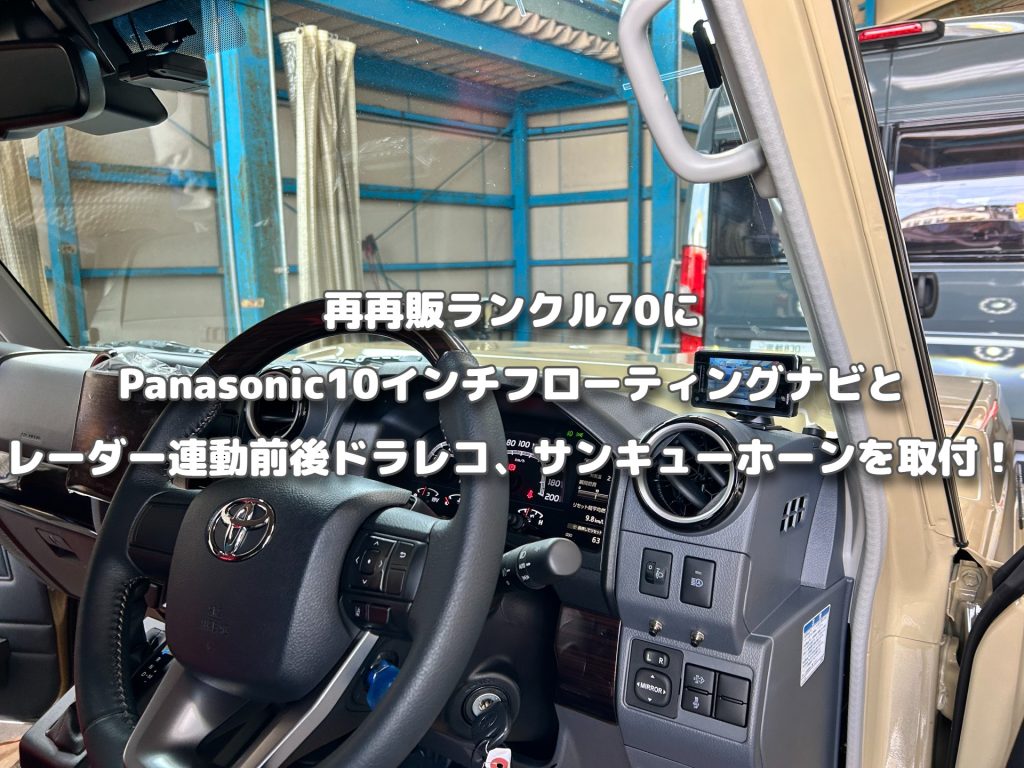 再再販ランクル70にPanasonic10インチフローティングナビにレーダー連動前後ドラレコ、サンキューホーンを取付!