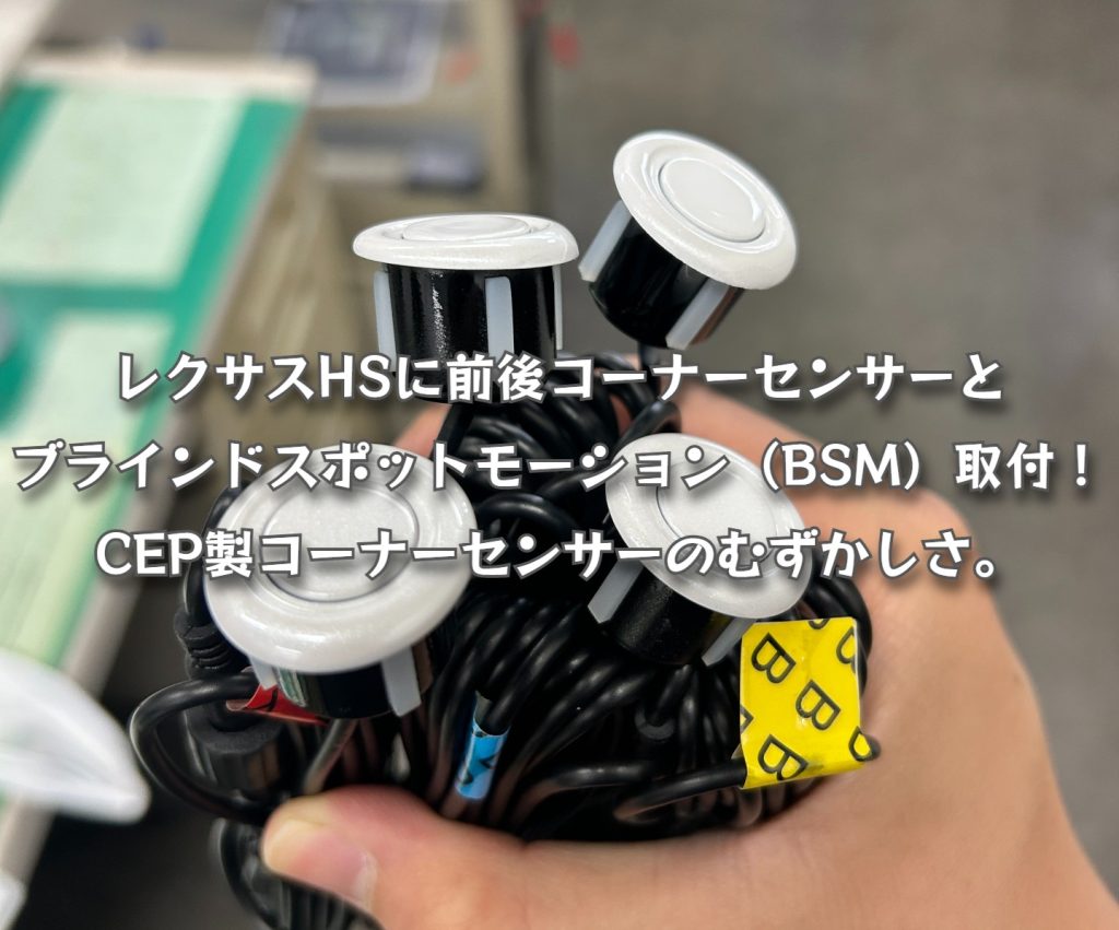 レクサスHSに前後コーナーセンサーとブラインドスポットモーション(BSM)取付!CEP製コーナーセンサーのむずかしさ。