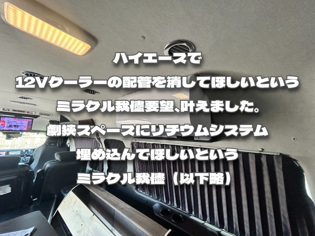 ハイエースで12Vクーラーの配管を消してほしいというミラクル我儘要望、叶えました。劇狭スペースにリチウムシステム埋め込んでほしいというミラクル我儘(以下略)