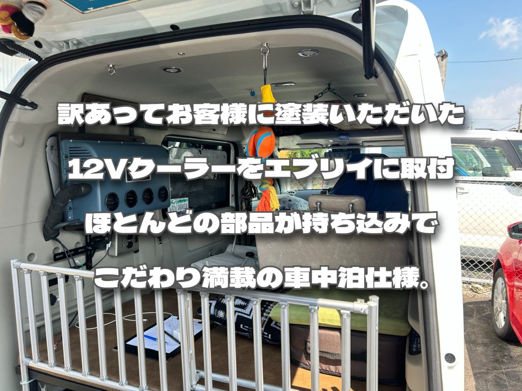 訳あってお客様に塗装いただいた12Vクーラーをエブリイに取付。ほとんどの部品が持ち込みでこだわり満載の車中泊仕様。