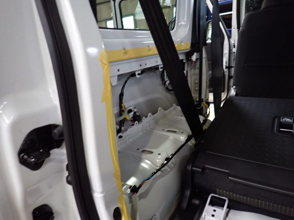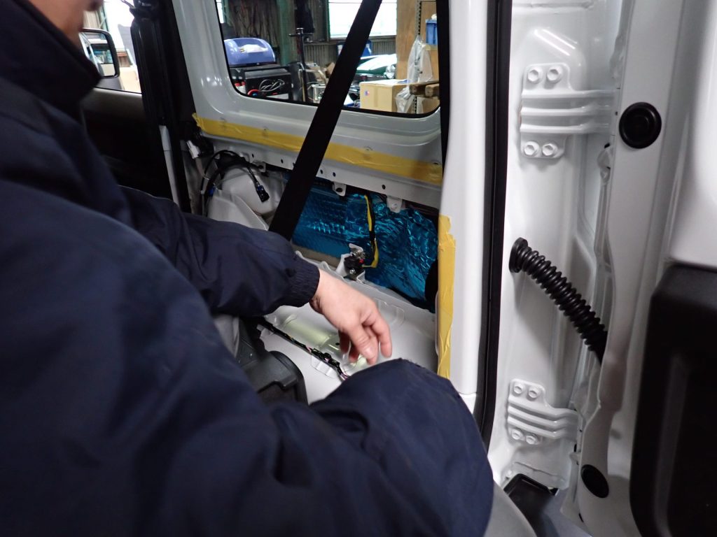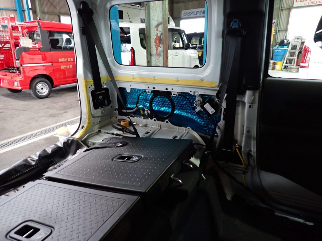 リアスピーカーを新たに取付いたしますが、ご覧のように内装を取れば、鉄板そのもの。