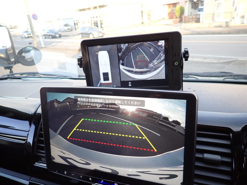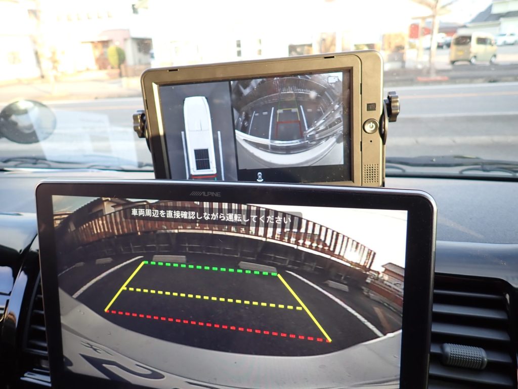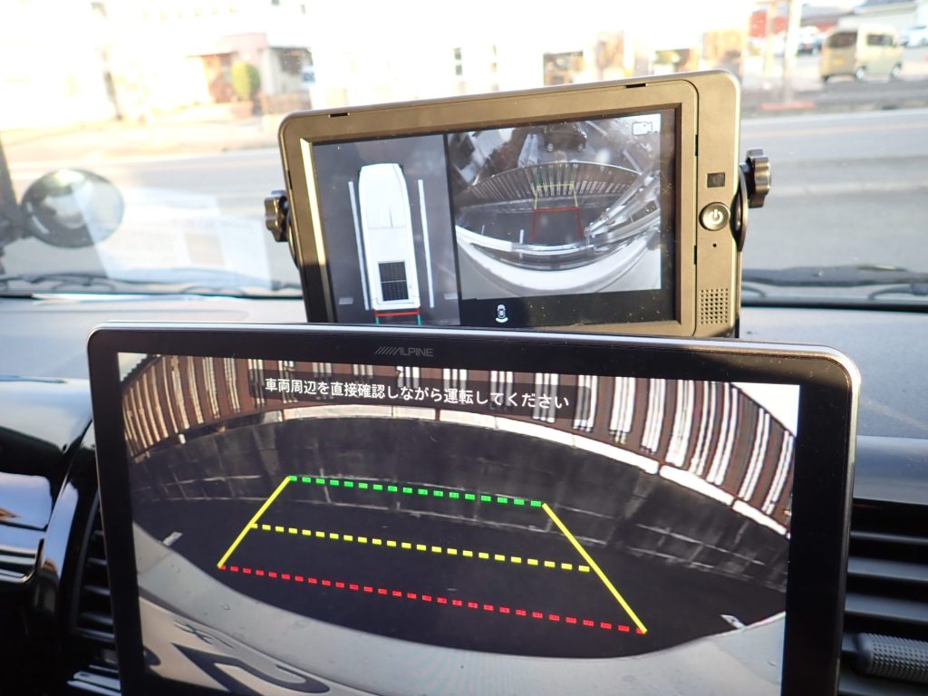 上から見下ろすアラウンドカメラと、もともとついていたナンバー付近のリアカメラ。