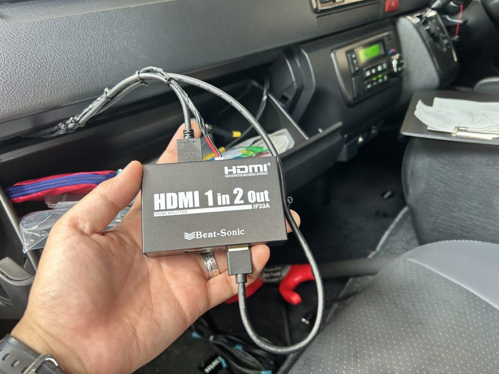 そう、簡単ですよね。ナビにはそのままHDMIを繋げるのですから、分配したHDMIをRCAにして純正モニターに入れればいいんです。