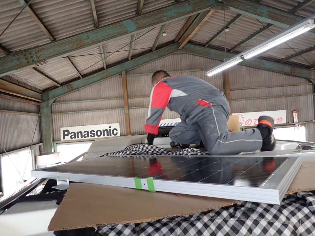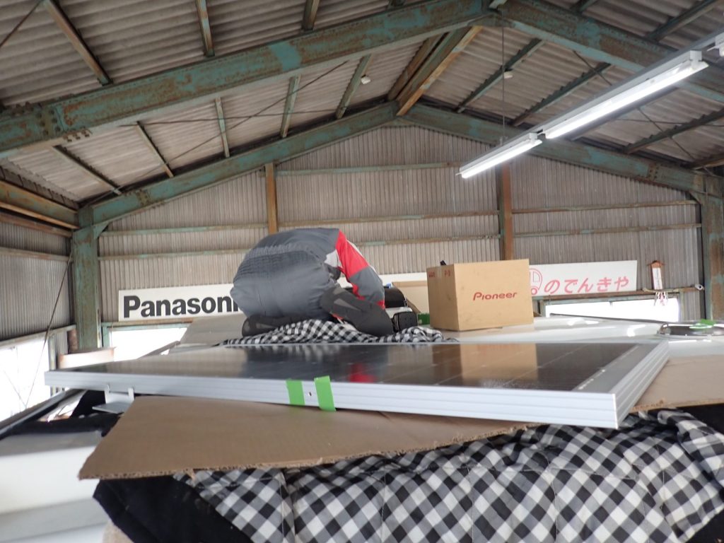 そういえば私は高所恐怖症です。なので、ソーラーパネルの寸法測定~取付まで、一切の関係を断ちます。ルーフの上に上るなんて・・・・この文章を書いているだけでも鳥肌。チキン。