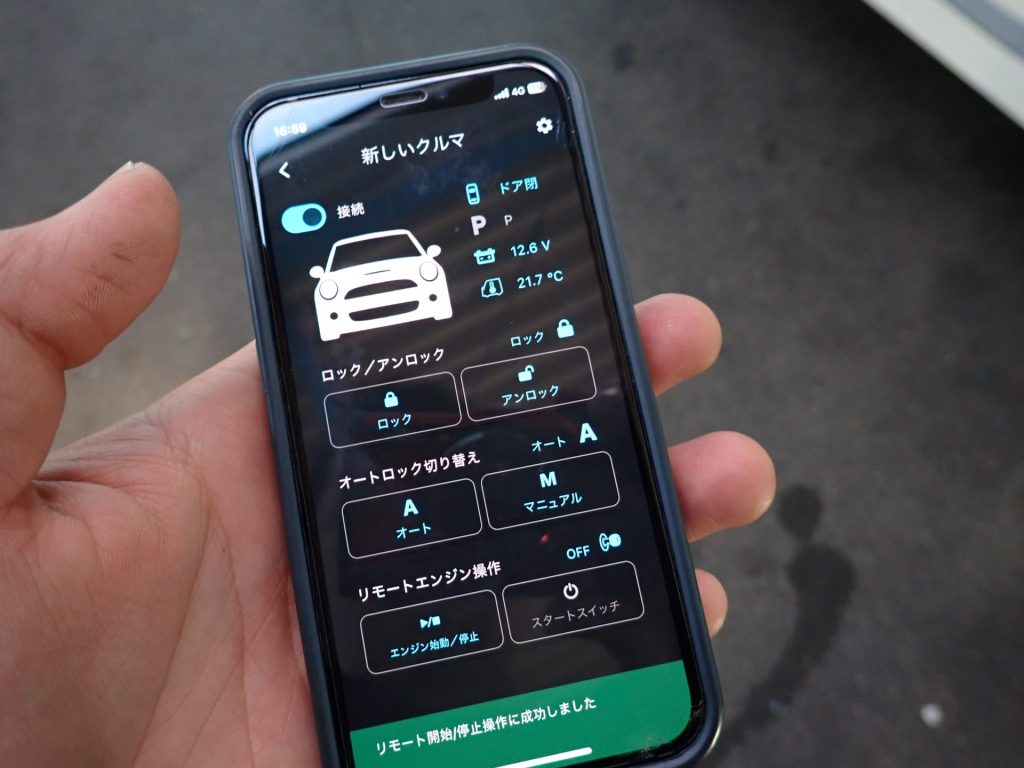 今回はVerスマホ。スマホで操作できるんですね。キーレス、エンジンスタートも可能で。未来感が凄い
