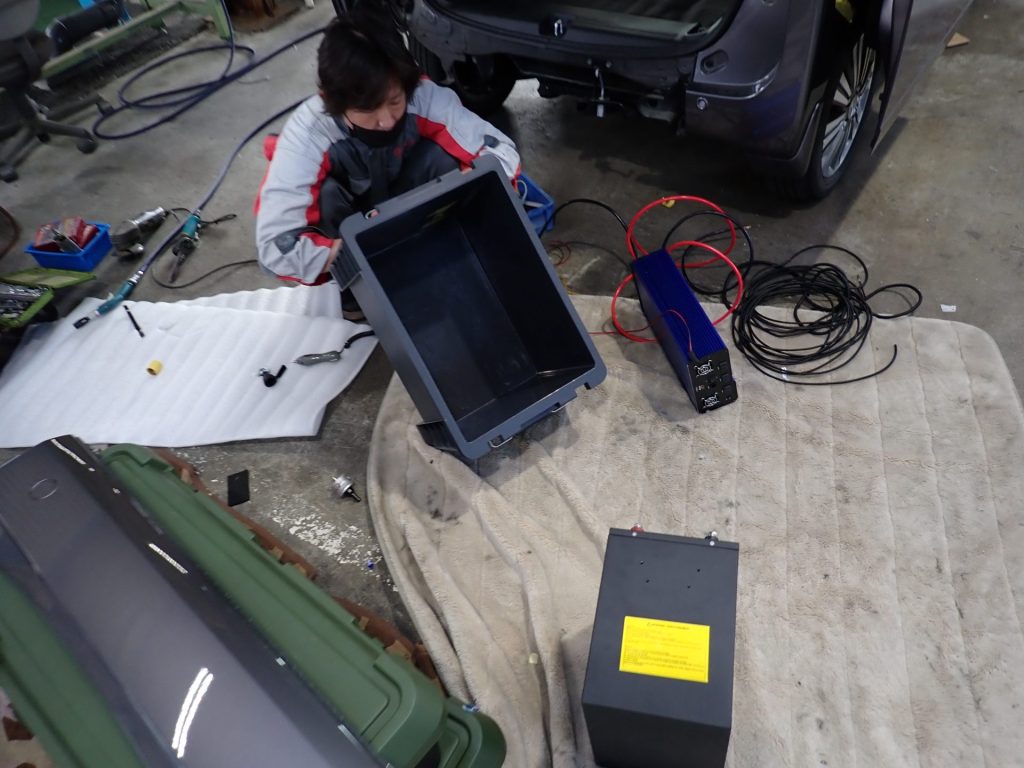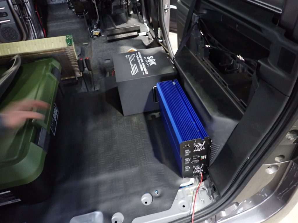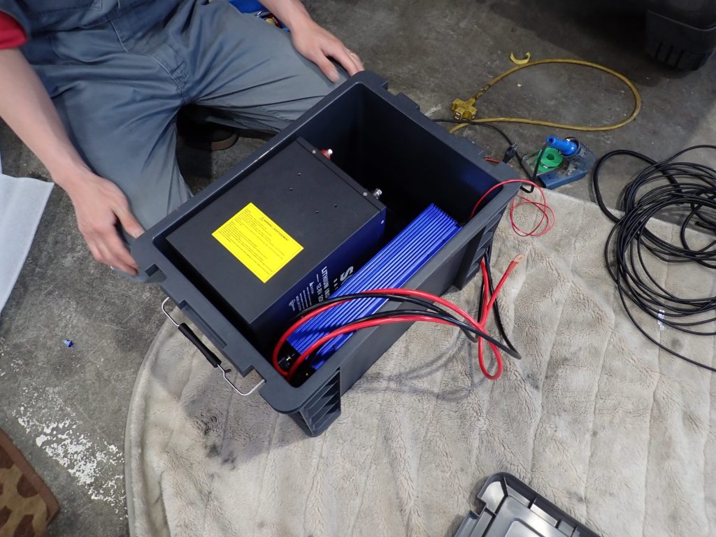 今回は200Ahリチウムバッテリーとインバーターと走行充電器、外部充電器。