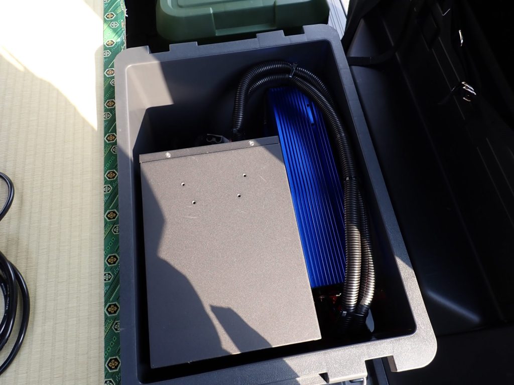 不安だった排熱性はインバーターの排熱ファンに合わせて穴を開けました。