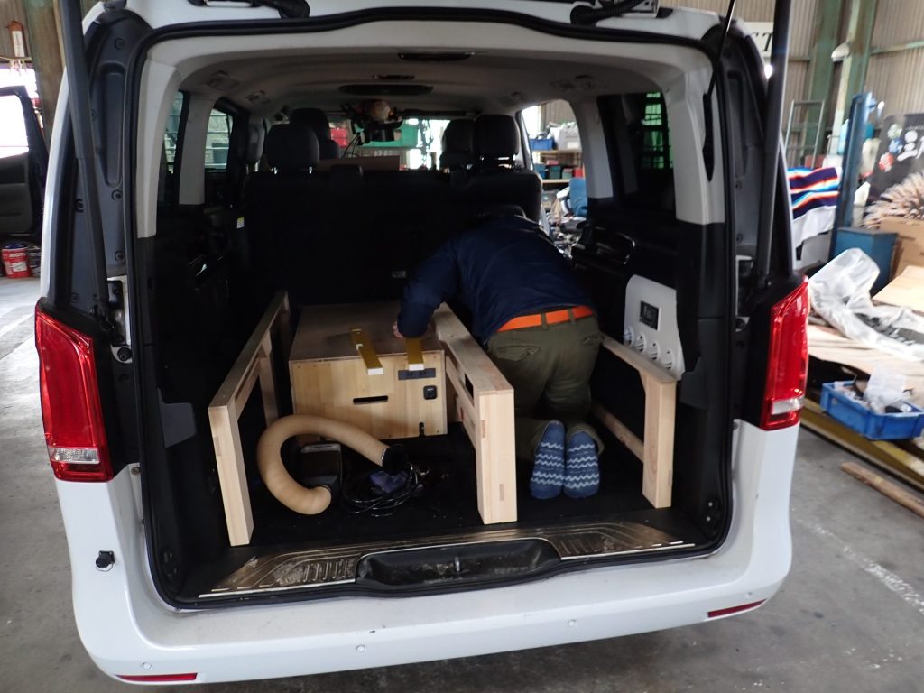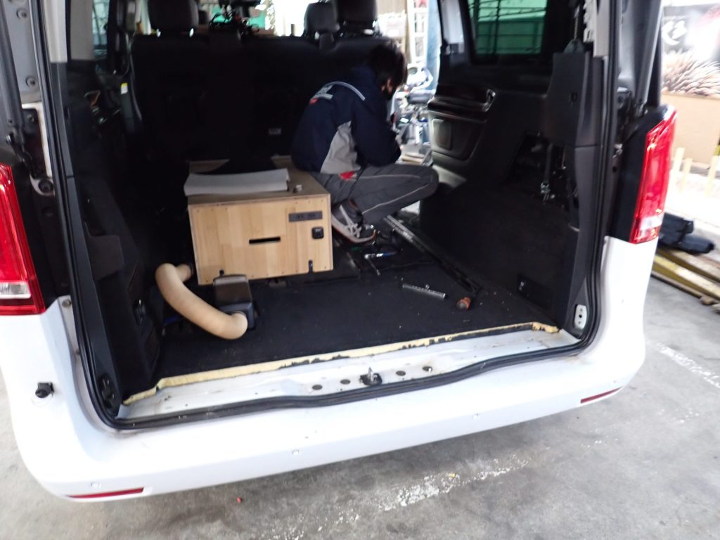 ベンツVクラスをトランポ兼レジャー車に変える!Part2:12vクーラーと「棚」製作