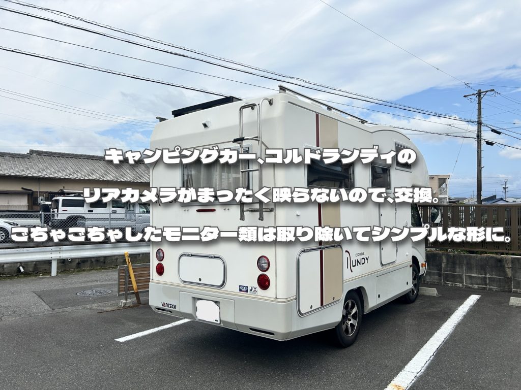 キャンピングカー、コルドランディのリアカメラがまったく映らないので、交換。ごちゃごちゃしたモニター類は取り除いてシンプルな形に。