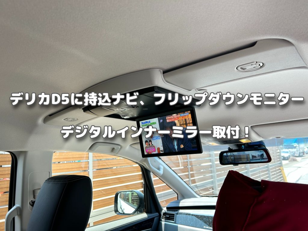 デリカD5に持込ナビ、フリップダウンモニター、デジタルインナーミラー取付!モニターの位置がすげえ。